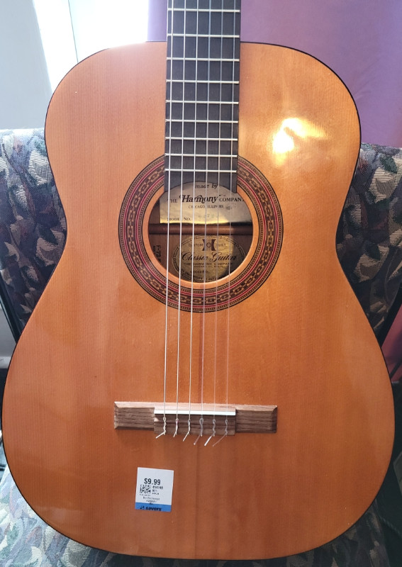 After spending a few weeks learning how to wrangle the ZOIA, my attention wandered over to the early-'70s Harmony classical guitar I had picked up at a thrift store for $10 (I'm not sure why they didn't have it priced at $200 like they price every other musical instrument). I had to spend more than $10 to buy a new set of tuners for it, but once that job was done I was off, plunking away on this thing instead of staring at a tiny screen.