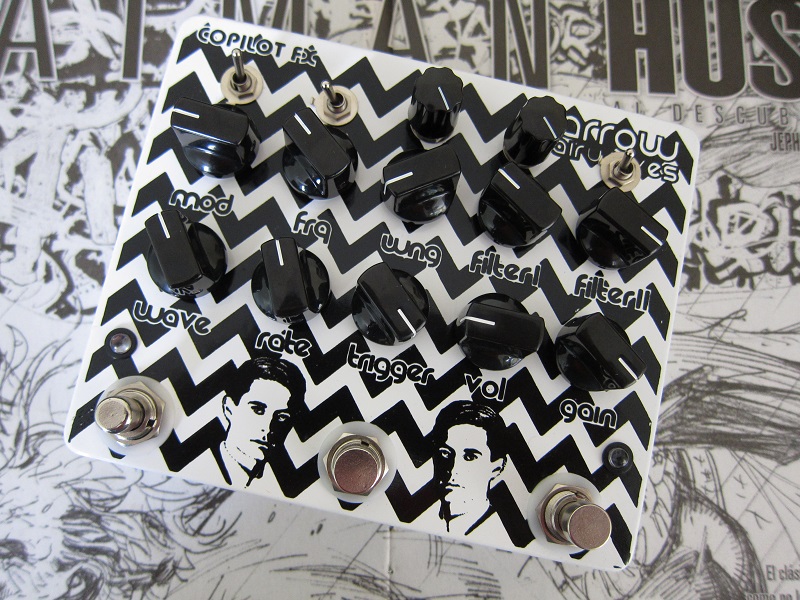 Custom Arrow Airwaves, it has an external trigger jack (so the wng can be applied/activated from an external audio source, instead of the instrument/signal at the input), also you can select if the trigger is activated with the signal or when there's no signal. 2 WNG voices one is more harsh and the other is filtered and both can be modulated, internal LFO to modulate the dry signal, wng (harsh) or the filtered wng, dry signal has a gain knob so you can have a nice overdrive sound and when it is modulated a tremolo.