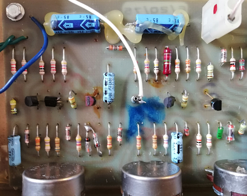 I like the wavy circuit design and all the different diodes/resistors. And the transformer, gee. This was right after I sprayed the deoxit in a few spots, which cleared up things a little. I don't think it made much difference tho, seems it's just the preamp gain pot that has a rough first half of its sweep, some nasty pops, but it's fine once you set it.