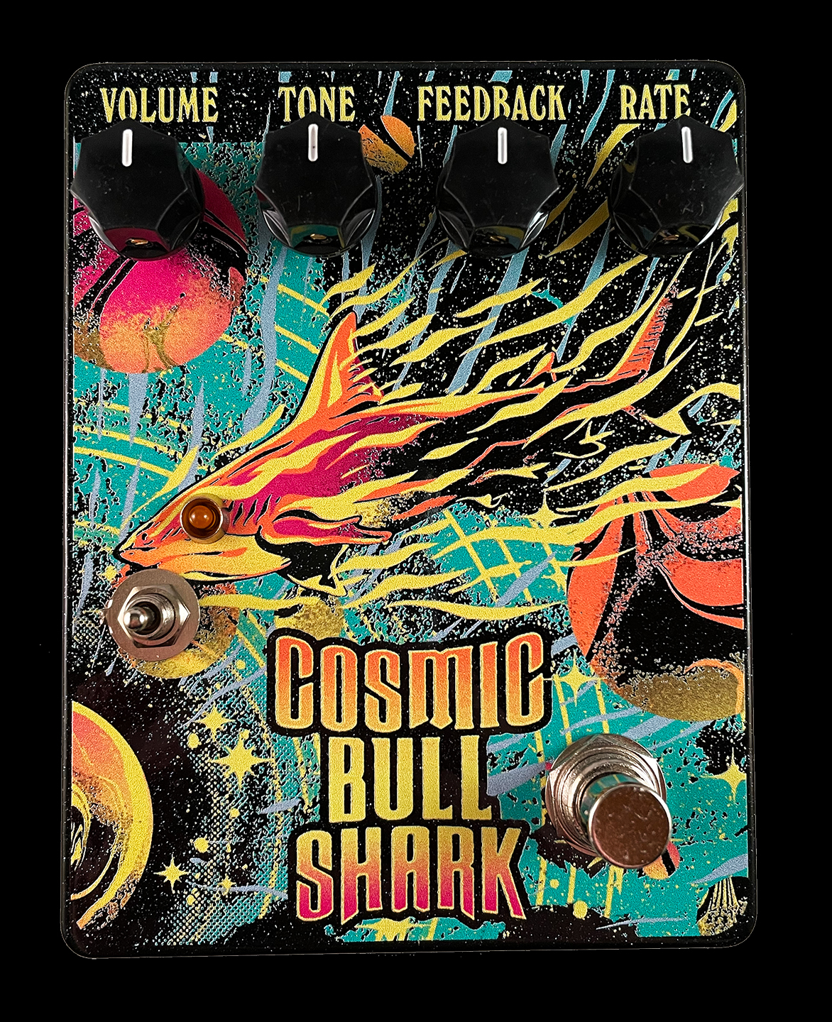 Cosmic Bull Shark is based on a future Fuzzrocious summer release (*hint hint* JULY) in the CHORUS family, but takes this future release in a new direction. Named after NCBC’s upcoming 11th Anniversary beer, this new pedal pushes the limits of creating something unique, easy to use and get a great sound out of without breaking the bank. A lush chorus gains some gritty texture by adding a powerful boost/OD/distortion in the wet path of the chorus. A three-way toggle lets one select a clean boost, gritty overdrive, or grindy distortion combining with the wet chorus to sound unique and take what a chorus can be to a new galaxy. When was the last time you played with a boost, overdrive, or distortion in a chorus’ wet loop, let alone all three?! This is not a boring ol’ chorus!