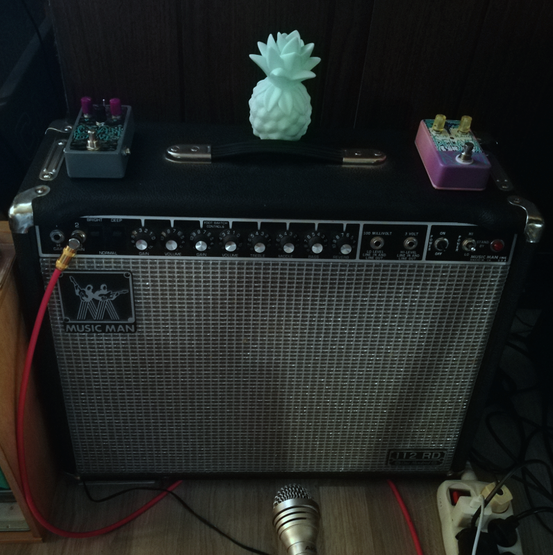 Like I posted in the GAS thread, an early '80s Music Man 112RD 100 turned up locally and I got it down to the equivalent of $565, so had to get. A Fender black face-type amp has been on my wishlist for a while, but a Super Twin (like my friend has) is way too heavy for me, plus usually expensive. This baby I was able to pick up in my car and carry up the two flights of stairs to my place without gassing out completely, although it was not pleasant.
