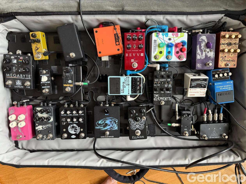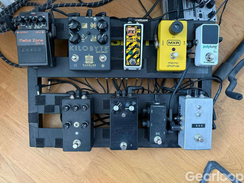 No boxes available. All pedals have Dual Lock on the bottom. Most have never been gigged.