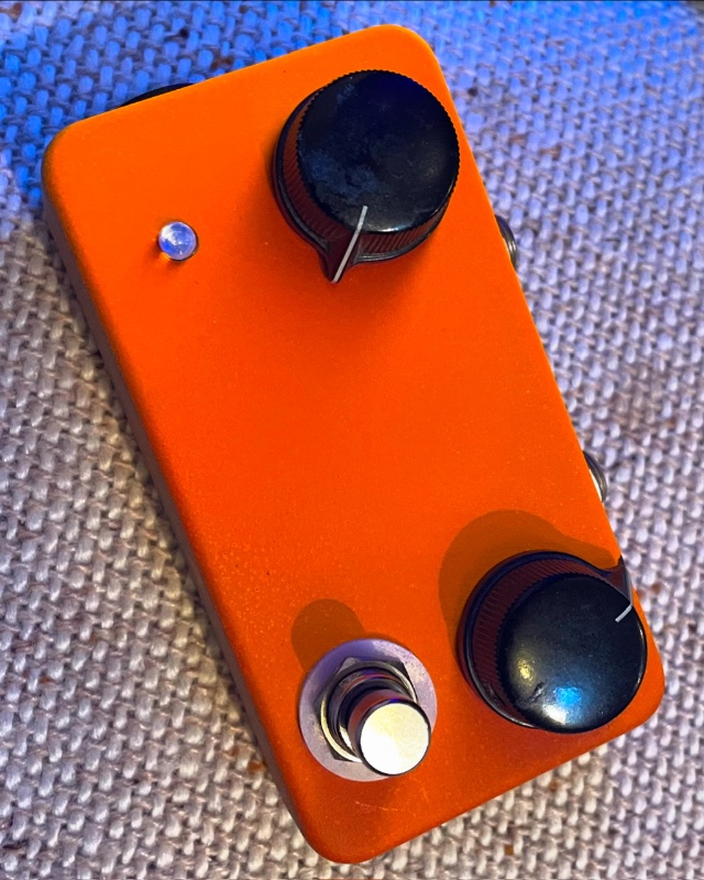 the pedal was originally the normal Mxr layout… the enclosure is recycled from another old project that I never really liked… only mod to the design was I changed the input cap for a larger one so it works better on bass.. I painted it with orange safety paint
