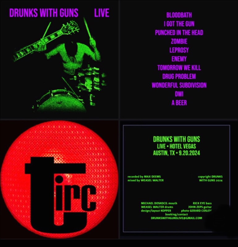 Yep. The band that gets name dropped by everyone from LCD Soundsystem to Mudhoney has their first new album in decades. Drunks with Guns Live is available as a download and CD at TIRC Records on Bandcamp. Best get it before it’s gone!!!!!