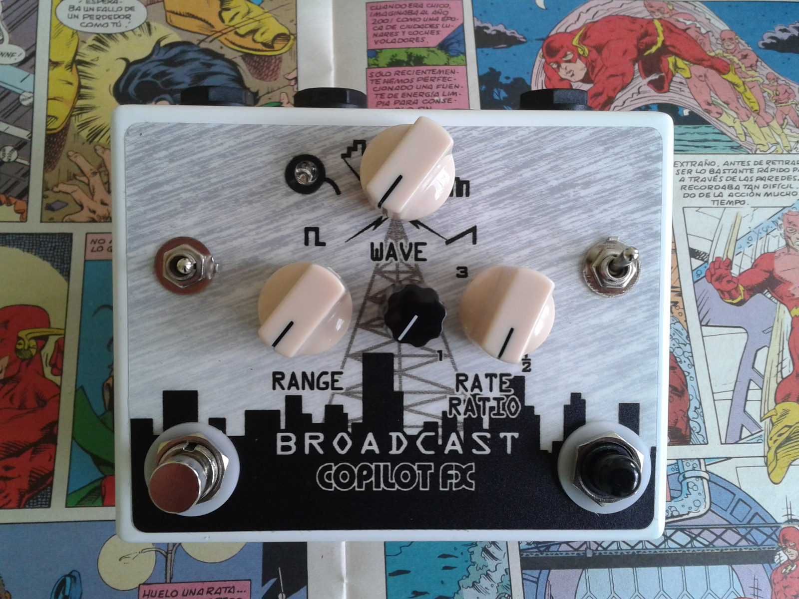 Broadcast, with expression control of the range and/or speed. Top toggles select if the range and rate/ratio are controlled via the knobs or expression pedal, switch on the back if it's tap tempo or the ratio works as normal speed control