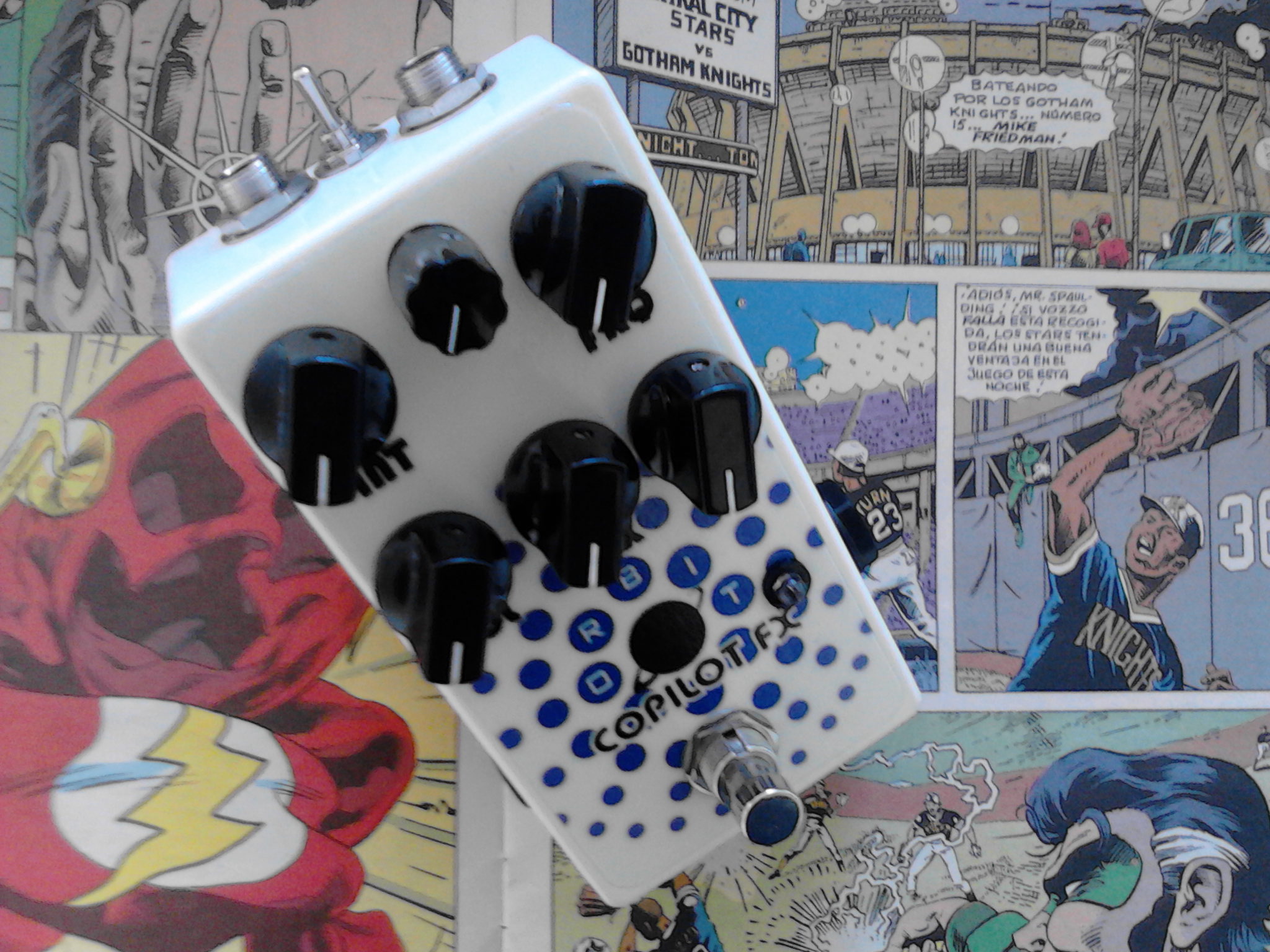 Yeahz, i love the Goo artwork, this is an interesting device, is some sort of Blender, it has 2 loops, one wet loop (which is always on) and a Dry loop (with nothing plugged in works as a clean blender) over the wet loop, a simple wet dry setup solution, great for the shoegazers and people that uses lot of fuzzes at once and need to have some clarity and the layers/processed sounds of running lots of pedals at once. the switch add/kill the dry, with the dry off is just like your regular signal chain. Toggle changes the frequency of the dry, so you can have a full sound or trebbly jangly type of sound going on it, mixed with the wet loop.