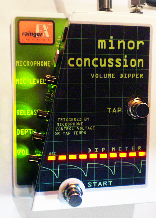 It cuts your volume every time it gets a trigger - which comes from either its own internal tap tempo, the mic (supplied) in your drummer's bass drum, or CV in. How quickly the volume returns is decided by the 'return' pot, plus there's also a 'depth' control for the amount of cut, a 'mic level' for getting the bass drum mic triggering nicely, plus an overall 'volume' control.