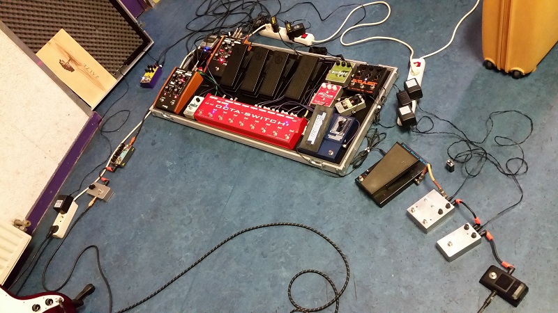 This is the set up I used last night during rehearsal. Shit's getting out of hand with all the accessory pedals... And I just finished building a fat fuzz factory clone, and have a brass master in the works, too...
