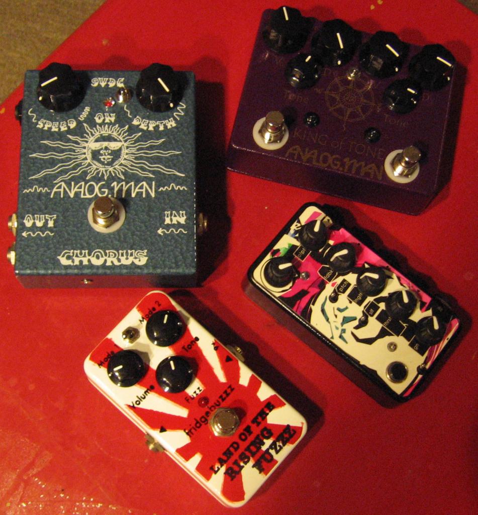 Other than the etched pedal which is a Germanium-based Fuzz Face clone that a friend made for me, you know what the rest of these are. OK, maybe except the Blackstone in which case shame on you.