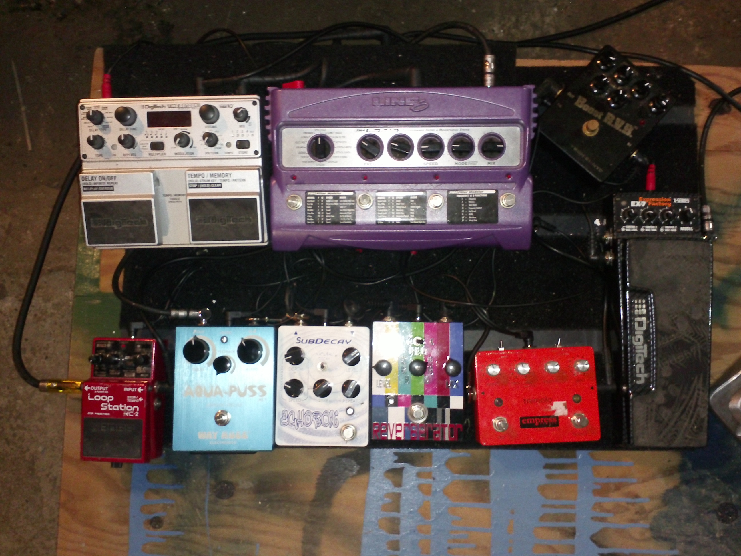 skullservant wrote:So, here is the signal chain: PitchBlack -> EBVPJr (I really should swap my 25k for a passive model) -> CaveDweller -> SSTwosome -> Whetstone -> DMB -> DL8. 3 delays on one board. HEAVEN.
