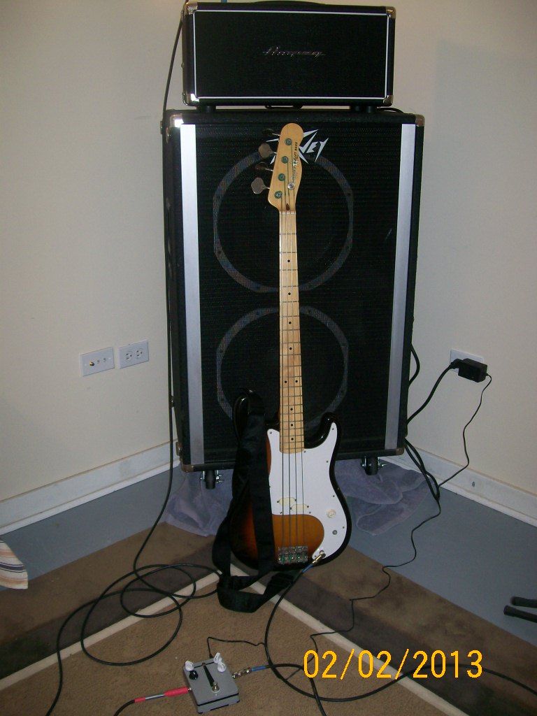 1984 Squire Bullet Bass. Strung with flat-wound 45's, I had to sand down the nut to get the strings to fit.