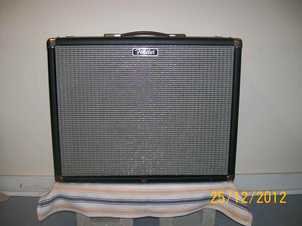 Fender 1x12, off of Craig's List. The guy I bought it form was really nice and even asked if I wanted to try a few different heads through it and if I wanted to hear the difference between the stock speaker and a Eminence Swamp Thang speaker he was selling to. He re did the tolex himself and it looks quite handsome. Really well done and it's only a year old. A keeper for sure. I got it for $75 which is an incredible deal, a steal really, considering that the speaker in it sells new for $90. And it's already broken in.