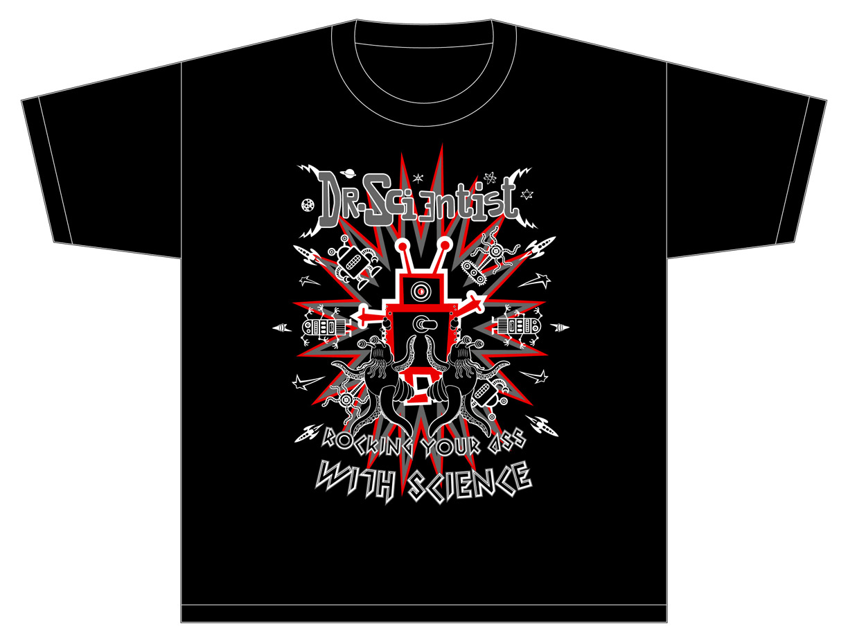 Everybody who submitted a t-shirt will be rounded up in cages and interrogated for their address and t-shirt size so we can send them a t-shirt. The winner will be forced to choose his or her favourite Dr. Scientist pedal and finish and then also give us their address and t-shirt size.