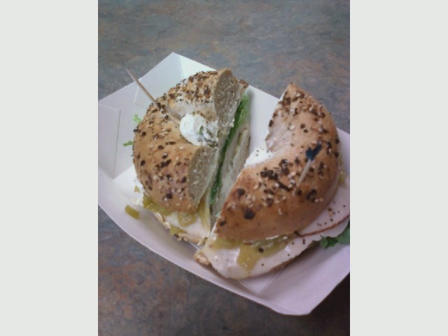I had this fantastic bagel once. Everything bagel with turkey, lettuce, green chillies, & jalapeno cream cheese. So great.