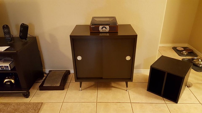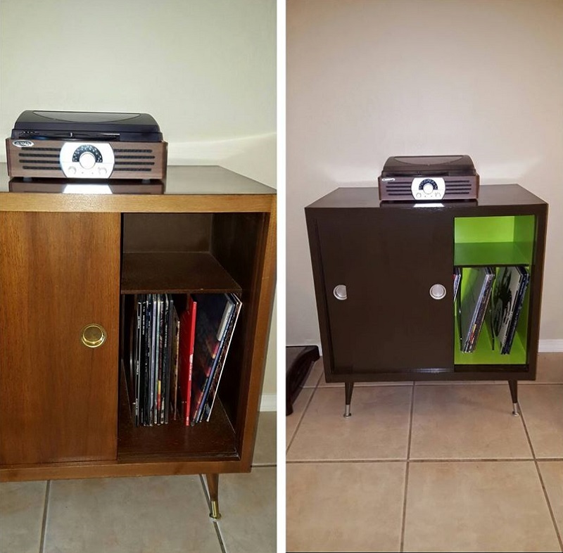 I am in the process of stripping an old record cabinet/credenza myself. Gonna apply some new stain but now seeing yours I want to paint the record dividers a nice color. I'll post some pics here, too.