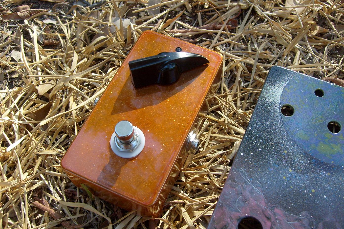 This is the first pedal I've built in a while, that I am hesitant not to sell. DE Soda Meiser clone (on turret of course!), with addition of momentary switching for the chaos/noise mode. This is another Mammoth powder coated enclosure, with a gold antique finish.
