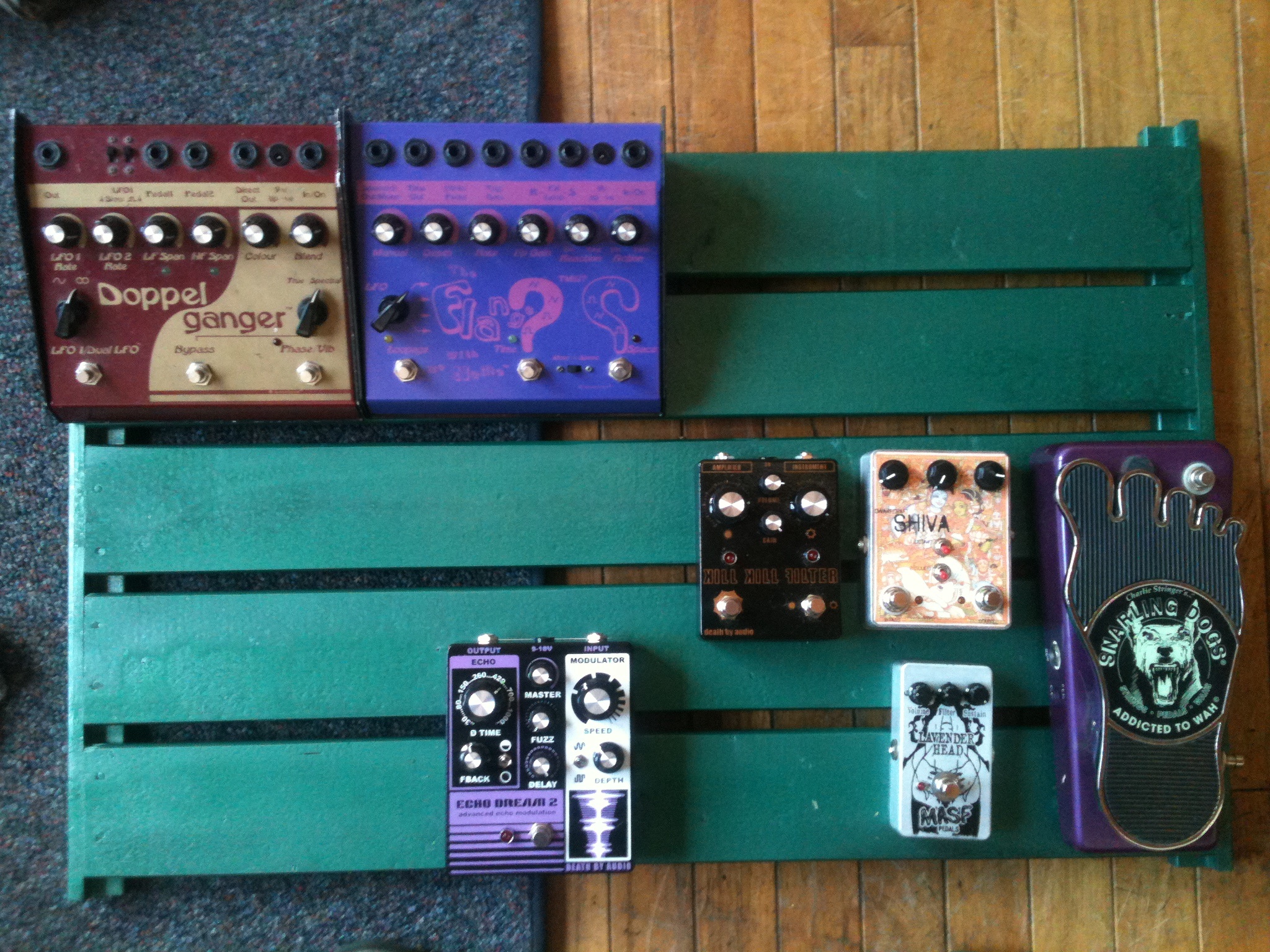 fungalattack wrote:Two guitar boards. Very free form. My fav components fuzz, reverb and delay and in abundance. I am in the midst of designing and building a sick briefcase board. I have many dreams - soon they will be reality. You shall see![]()
