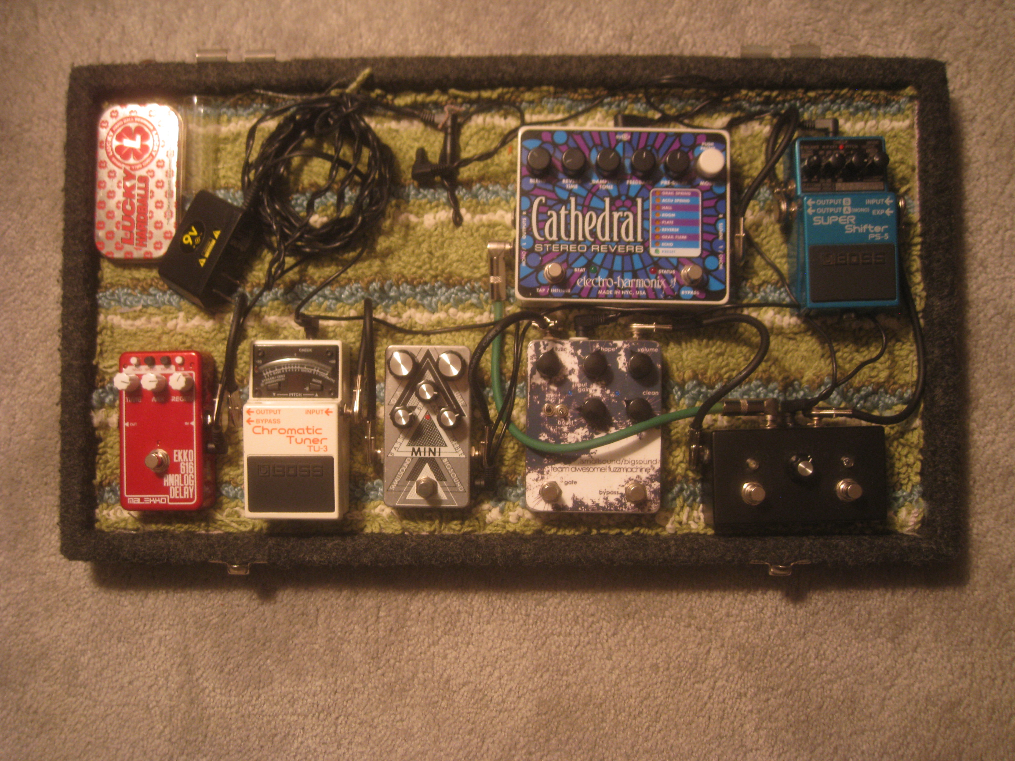 bigchiefbc wrote:So, here is my latest rearrange on the big board. The bottom middle spot is just waiting on a pedal build that's in progress. But other than that, I feel basically satisfied with this setup.