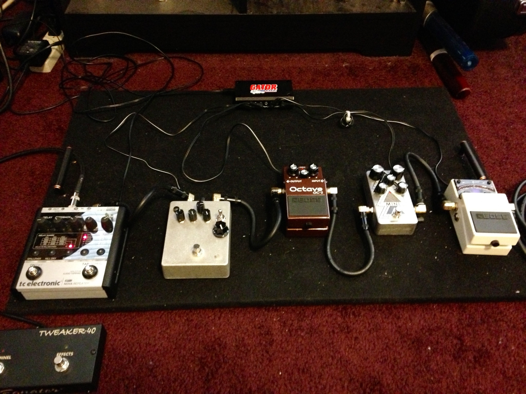 Currently in the the process of a complete rewire, waiting on some George L's stuff to arrive. Also have a couple of new additions not shown: reacquired a DL4 in a trade (may keep for the looper, or continue to flip, & more importantly, have a custom 2-in-1 fuzz box on the way from Anarchy Audio called the Cockblocker. Will post more on that in another thread, needless to say, can't wait for it to arrive!