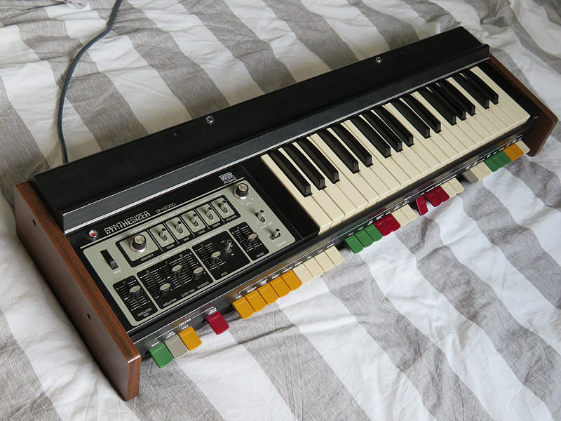 Now I just picked up its older brother, an SH-1000 (the first Roland instrument!) in terrible shape that is said to be defective (it powered on, but didn't produce sound, the seller said). All the potentiometer knobs are missing, as well as one of those paddle switch knobs. The black metal case with the controls has rusted. And I hope that no important parts are missing (most of the screws are, though).