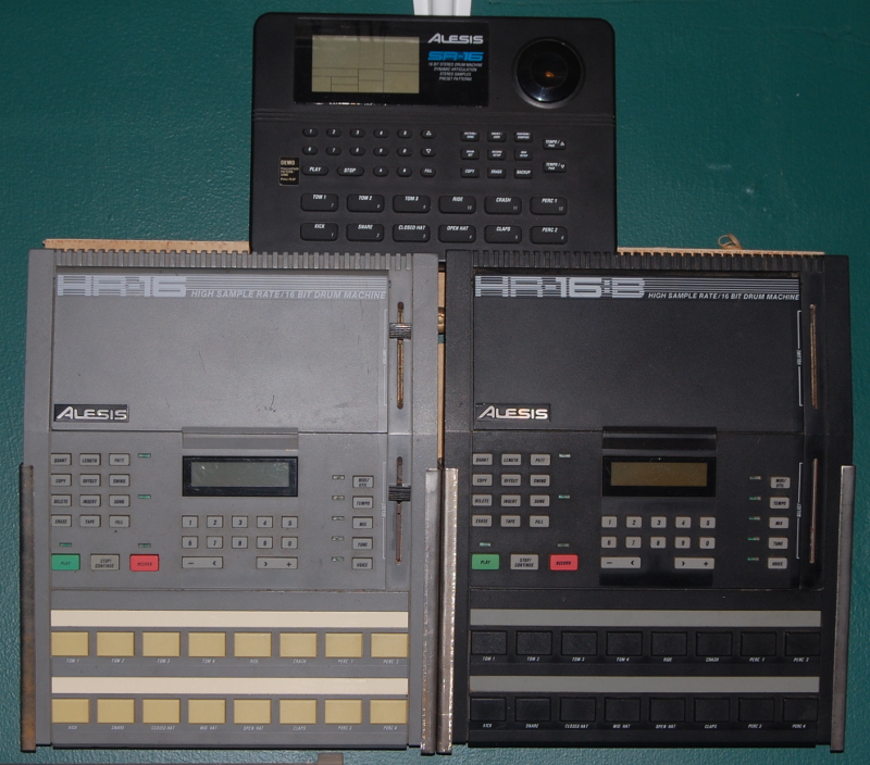 The Alesis HR16 and Alesis HR16B are pretty shitty drum machines, too. Years ago I had my B circuit bent by a Genius and now it has a ton of switches and sounds like someone slaughtering a Nintendo.