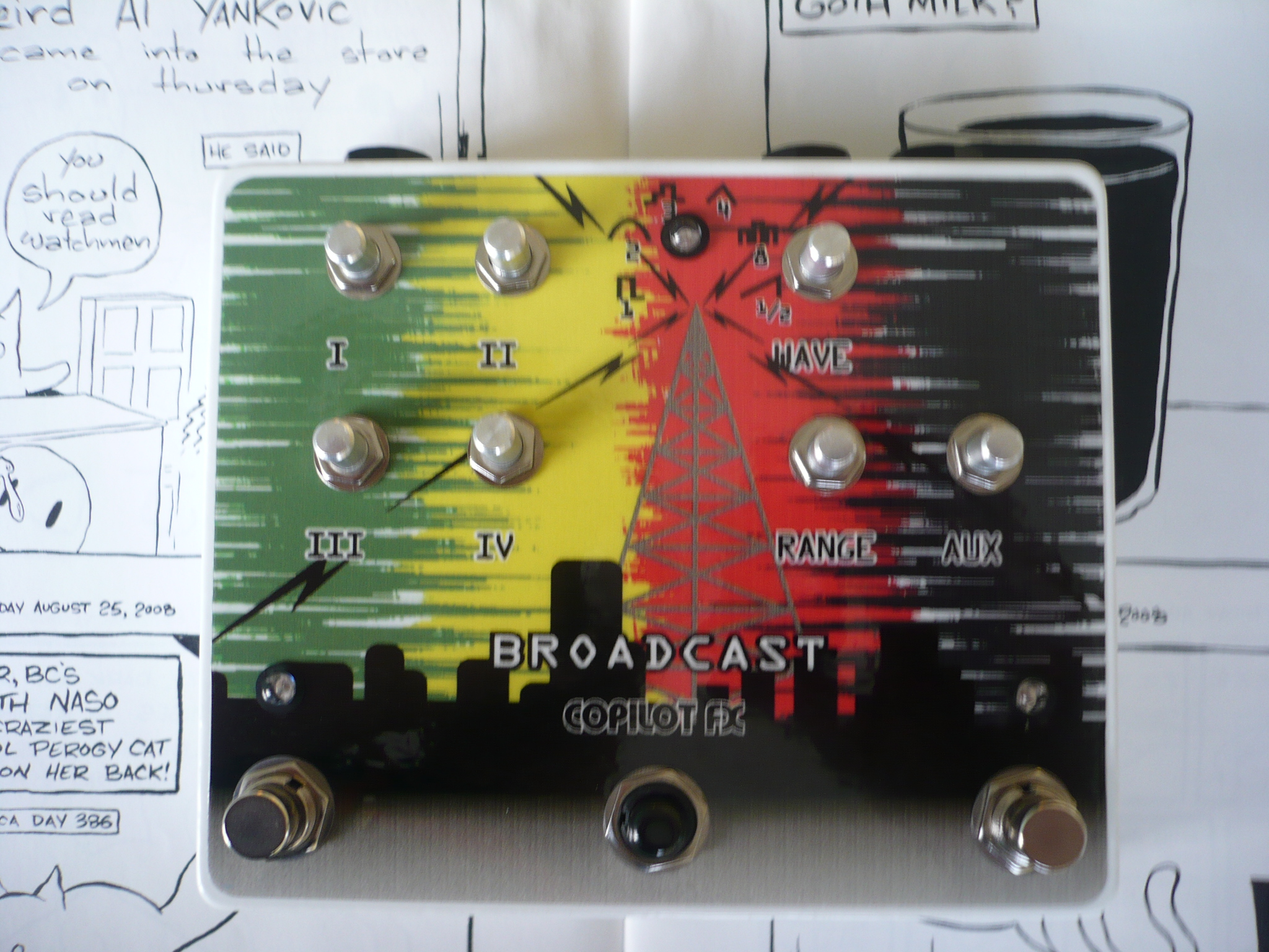custom broadcast and planetoid, planetoid 1st toggle selects up expression jack down broadcast, 2nd toggle is to kill the broadcast, last toggle is to add trem to the ring mod via broadcast waveshapes, broadcast has an out jack to sync other pedals with exp jack, words cannot describe, i want to have babies with this pedal and then have babies with the babies