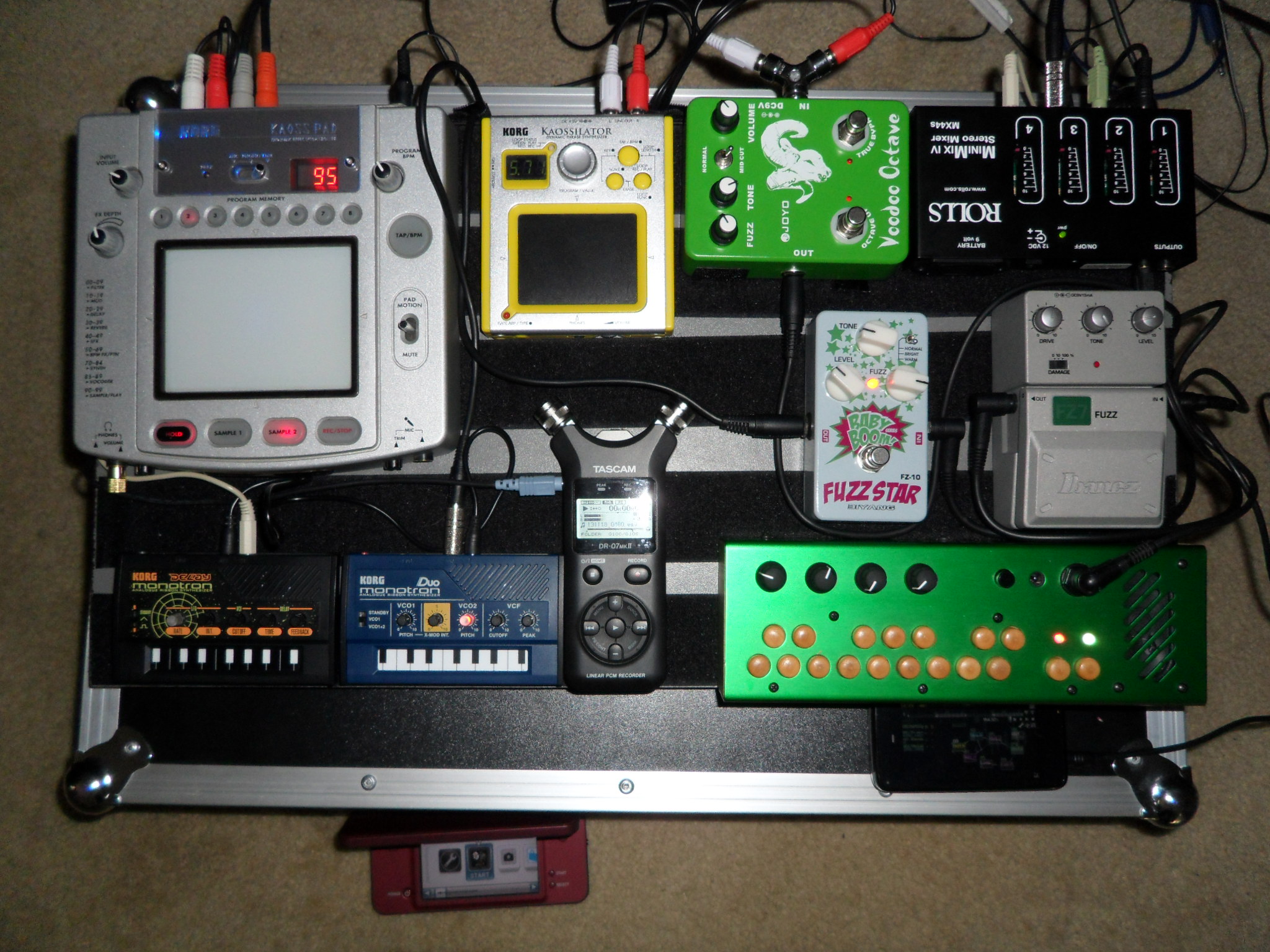 I'm Robert, from Australia, living round the corner from Sonidero in Austin. Here's some horrible noise I made at his house and my magical board of wonders. I have developed a keen love of fuzz and hope to learn more things from this vast pool of goodness. :hello: