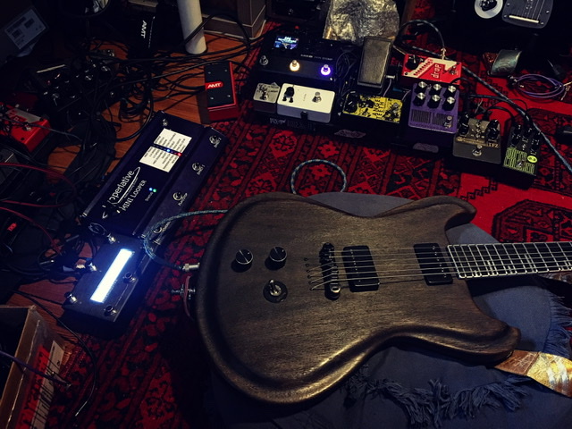 at this point most of the main board should be settled for awhile; the flanger is hella obsolete but i love its sound more than any other flanger i've heard, and the bumblebee fuzz slot currently occupied by the germanium Fuzzrite has been rotating for years and can always change if i hear something even buzzier. anyway, here's the near-culmination of about 15 years of altering setups.