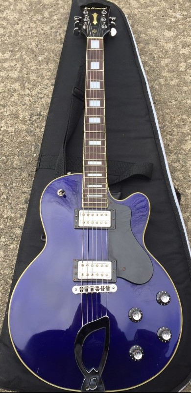 the new one is meant to be my low-rent Guild Bluesbird, but i like the DeArmonds more than the reproduction oversized Guild HBs they put in the Thayil Polaras which would be the closest you could get to the 70s big buckers; they started doing Bluesbirds in the 60s as an adaptation of the standard M-75 Aristocrat with the HB-1s but went over to the big bois by the early 70s. early Bluesbirds had the harp tailpiece shown here while 70s ones used the diagonal bar tailpiece screwed down to the body a la the SG-styled Polaras, and also became solid bodies rather than the closed hollow body of the Aristocrat. this should be one of the rare guitars i get in that doesn't need much but intake, setup, polishing, and replacing some of the small rusty screws that hold on the pickup rings, truss rod cover, and other bits. I FUCKING HOPE.