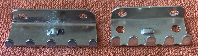 the Galaxiemaster spring chamber is a little trickier to implement than i thought, but still quite doable. counterintuitively the rout is wider than it is long, so i’ll need to run the springs at 90° to the string path rather than parallel. the second claw i ordered (on right in the photo) is a Squier-sized item and is much better for this application…it has holes so i can mount it perpendicular to the walls and gain more spring room, and also has longer tabs i can bend to hold the springs better. i ordered another and the chamber can wait until then.