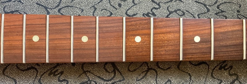parenthetically, Fender seems to have problems preparing non-rosewood fretboards in their non-US facilities. this isn’t the only example; you’ll recall that i had to sand the Indian laurel board on the Esquire, which was made in Indonesia while the Lead II is from Mexico. it seems to me that they try to simply do the same processes as with rosewood, but that’s not suited to either wood…laurel needs to be grain-filled and aggressively polished, while pau ferro, being harder than either, comes to life when sanded to 2000 and polished. it’s unfortunate that the market life of the reissued Lead series was probably negatively affected by the pau ferro issues. i know other people online who also bought them sight unseen were similarly bothered, and i have to assume people trying them in person would have been put off.