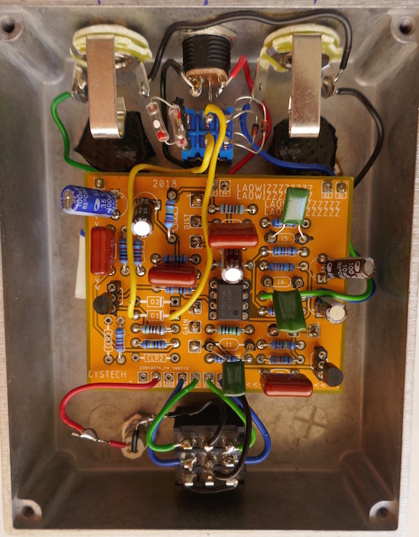 Since the original used a custom programmed chip for the LFO, we looked to Tom over at Electric Druid for an "off the shelf" upgrade. The StompLFO chip fit the bill here, and also upgrades the circuit as a whole. Instead of 5 waveforms and a expression pedal mode, the chip offers 8 waveforms, including a couple of different sample hold modes. We retained the expression pedal sweep, you simply turn the depth to zero, and the expression pedal manually sweeps the phaser. It also adds tap tempo, as well as a gate input for use with an external sync signal. A rate LED allows you to see what the big gun inside is doing. Like they say, more, is.... more!