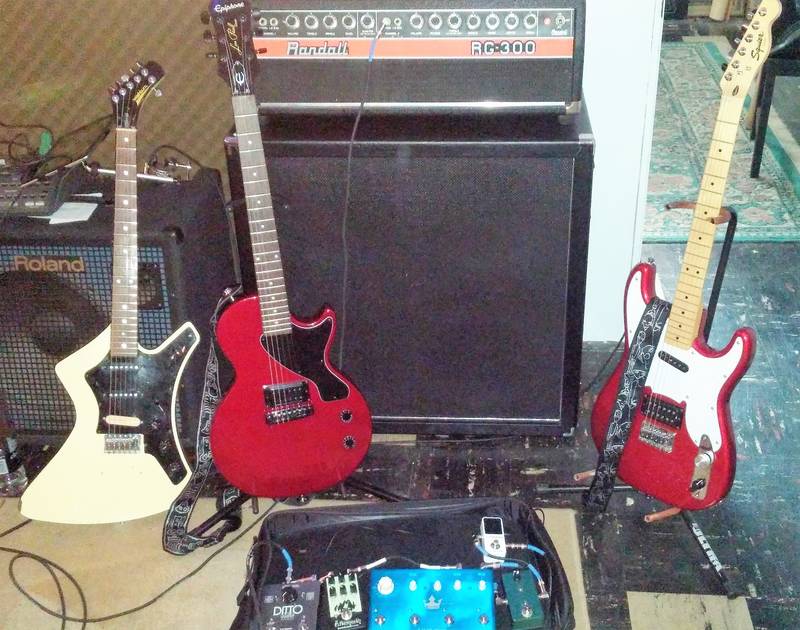 Pedal board is missing all but 1 of my dirt pedals. I build all my own dirt boxes and since I'm not all that great at it, I have two on the bench for repairs. Normally running the stereo outs from the Ditto X2 into both channels of the Randall but did not in the picture.