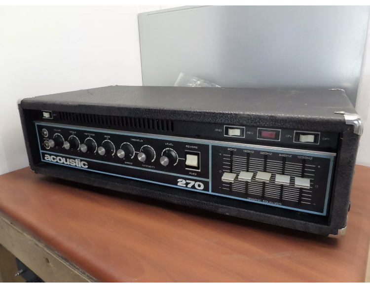 Picked up this vintage Acoustic 270 head recently! Needs some TLC, but it works! Sounds great and came with the original footswitch and everything. I particularly like the Tremolo on it, it’s a real square wave pulsing trem. At some point i’ll hook this up with a full stack and see how much loud I can handle!