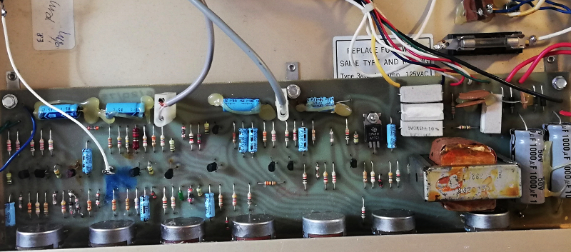 Adding this inside cutout view, it has a simple rustic beauty.. a couple of the transistors seemed to have hairy legs. Anyway, I just couldn't pass this up at the price and somehow I love old solid state combos.