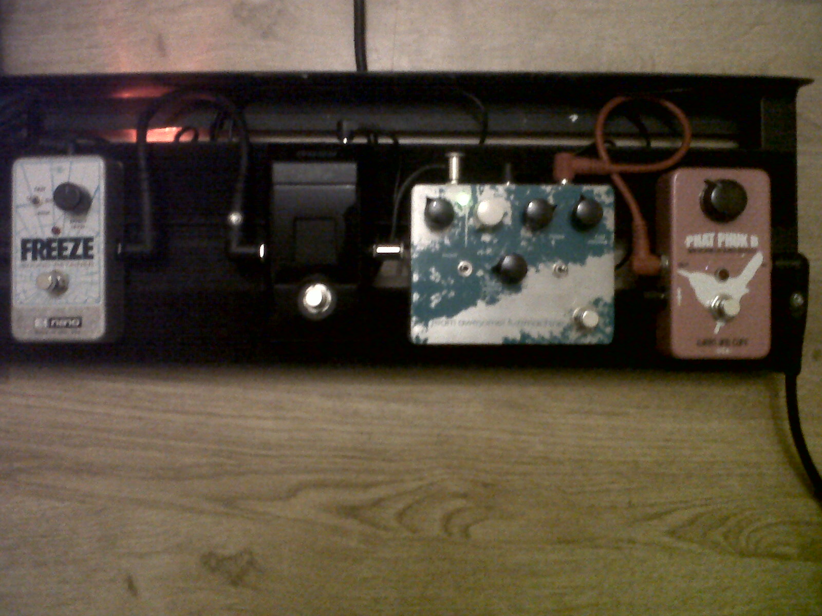 The rig, currently. We're currently changing up a few things and I'm working out a few kinks in the chain. Going to leave it for a bit all apart, hook lots of shit up in different orders, add a HOG and an El Capistan, and figure this out. I have some nice stuff going on, and should be sending that echo park for a rehouse on the morrow, so we shall see how things end up.