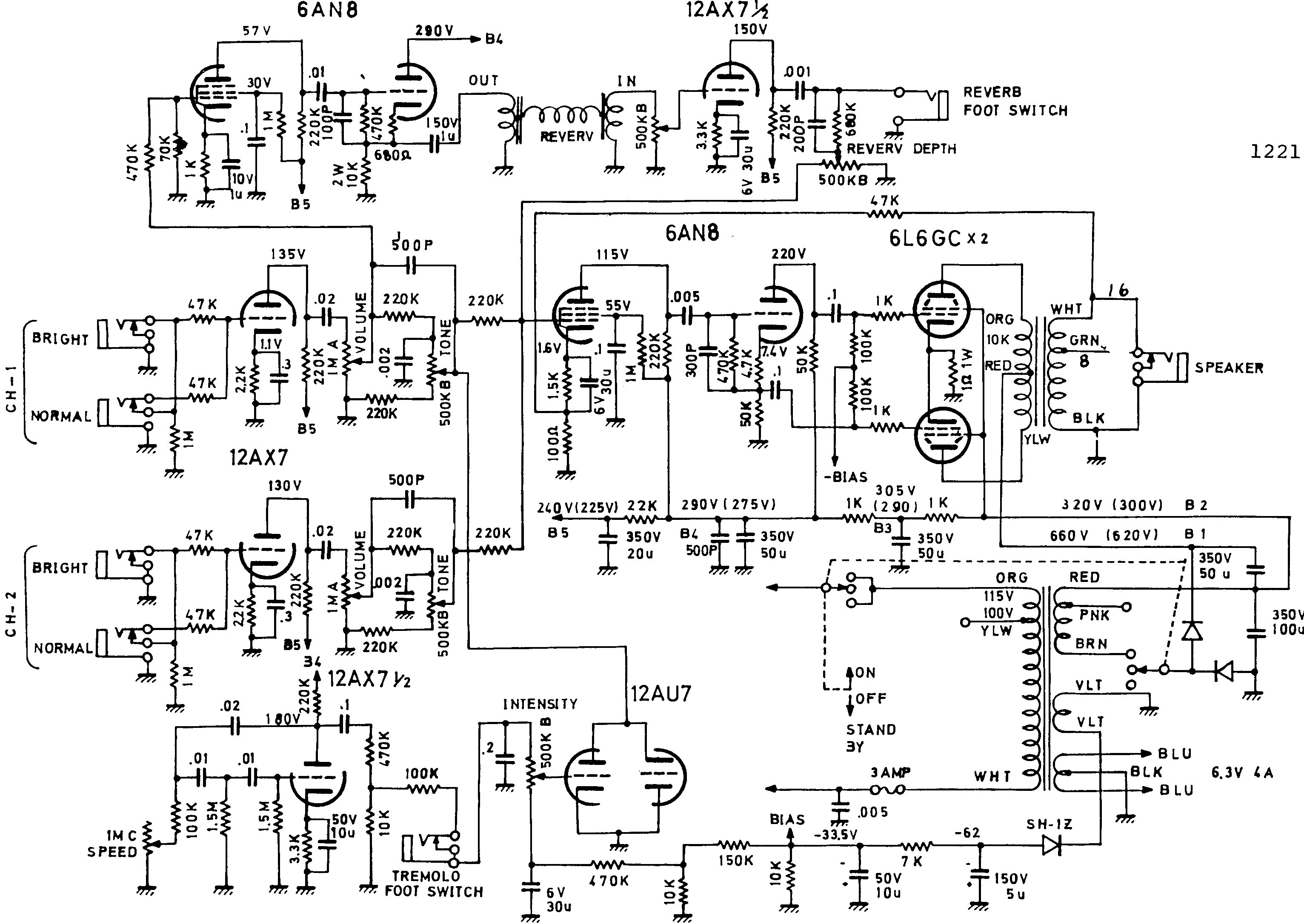 instead of on/stnby/off. It'd also be nice if the bright and normal jacks were one jack with a bright/normal toggle instead. After that, maybe a new set or two of various tubes to try out, & I'd call it a day