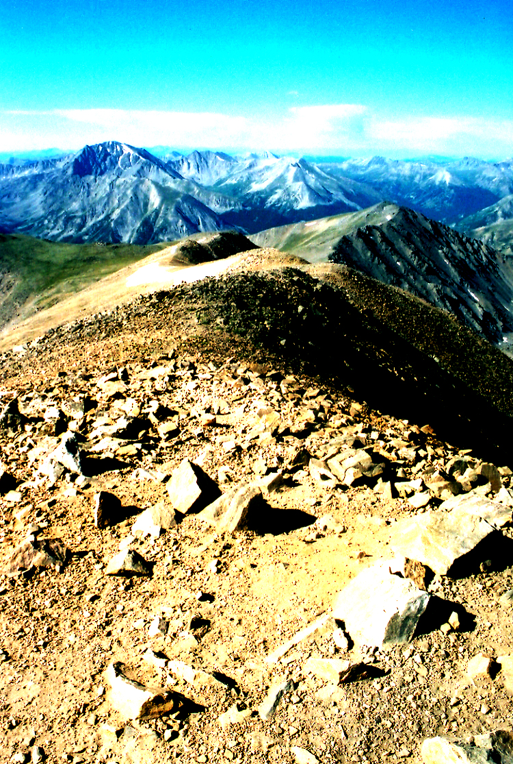 All of the CO pics made me remember the last time I was in CO, on a hiking trip. This was my view looking down the ridge from the highest point in CO (also the highest point in the Rockies):