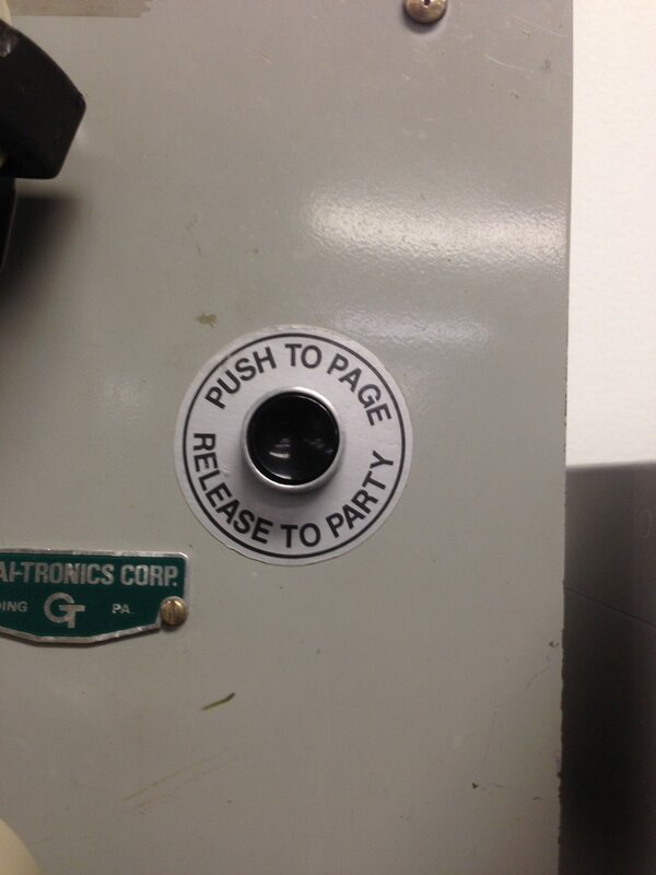 So, we were walking through this giant facility, and this was the button on one of the phones on the wall.