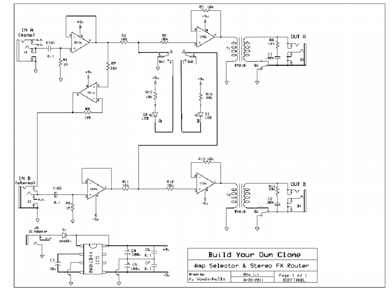 http://buildyourownclone.com/collection ... mpselector - it has phase control and ground lift and isolated transformers, buuuuuuuuuuut... well, from their description: "It has two footswitches: one selects between channel A and channel B; and the other turns both channels on at the same time." However, I would like Footswitch A to turn channel A on, and footswitch B to turn Channel B on. When both switches are on, both amps are making noise. When either switch is off, that amp no longer emits sound (well, other than the hiss from ALL THE GAIN ON THE BOARD GOING INTO THAT AMP).
