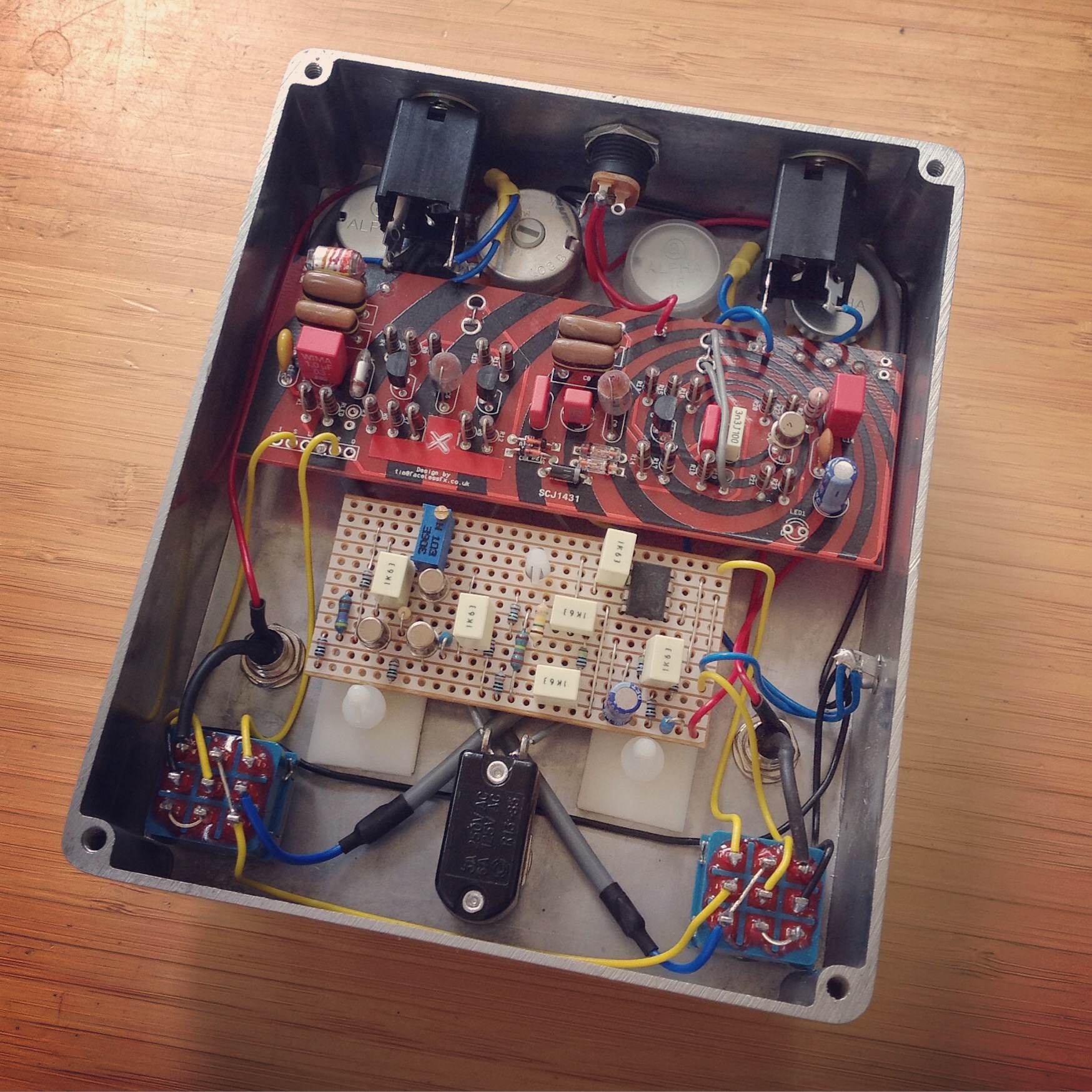 A non scooped, less gainy Muff based thing, which I was aiming to make as more of a useful recording tool. Plus a switchable clean octave up.