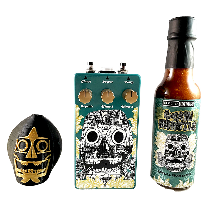 This device comes with a 3d printed death whistle and, for a limited time, hot sauce.