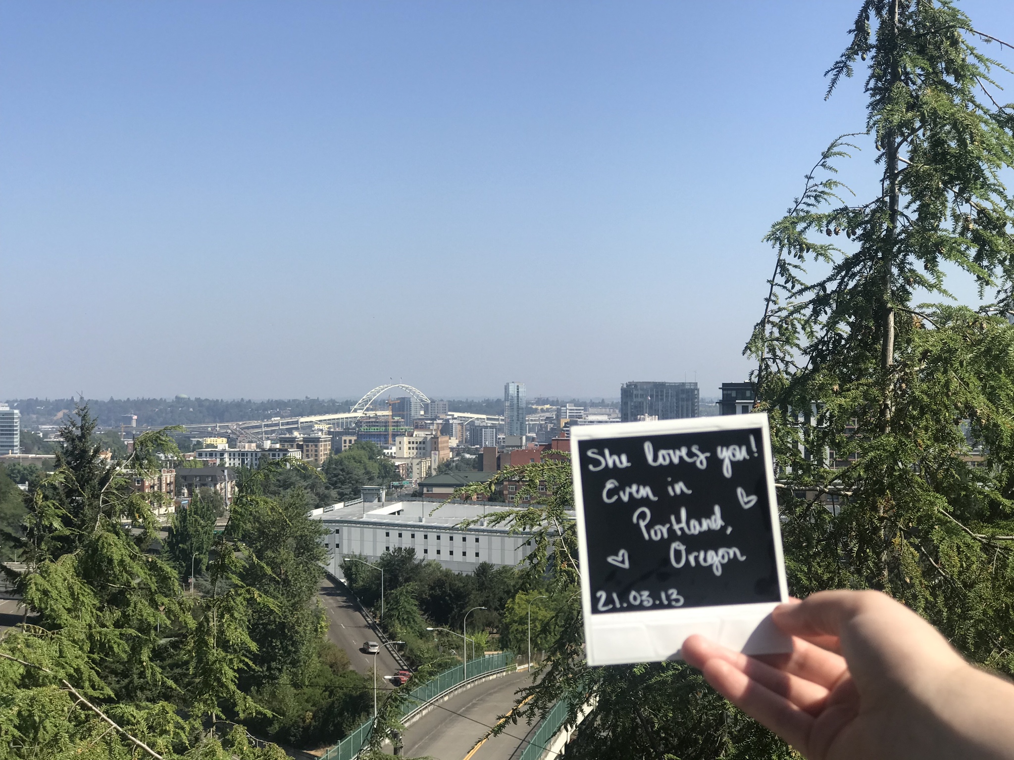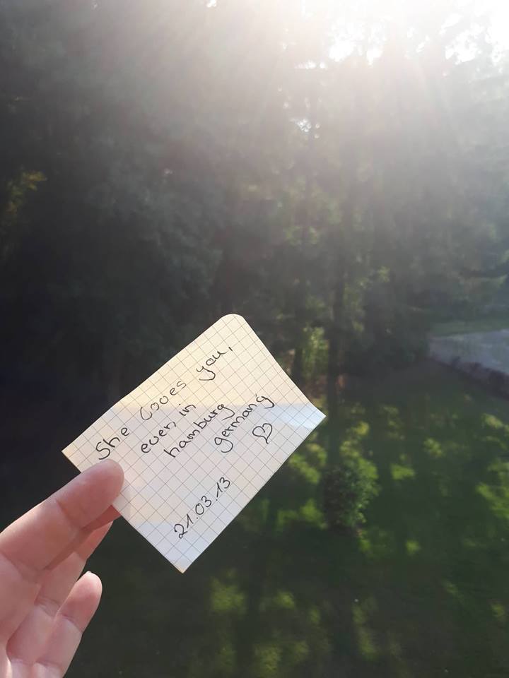 A friend has asked if I can help her put a collage together for her wife, if you'd be willing to help out a lovely couple, could you please take a photo of a message with "She loves you, even in (city, country)" with the date (21.03.13) as in the photo attached. Take it at your gig, outside your window, at a local spot or monument.