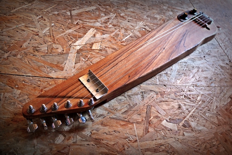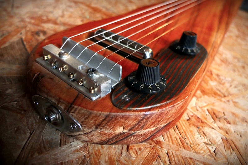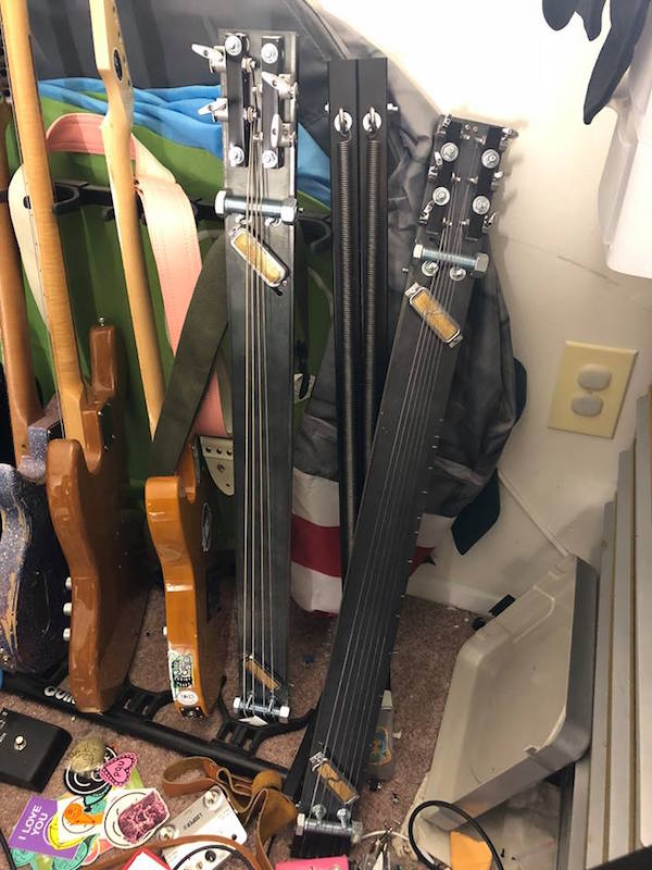 The Bass lapsteel has wound strings for more string noises, and is tuned DAda. The Guitar lapsteel has flats and is tuned DAdgad.