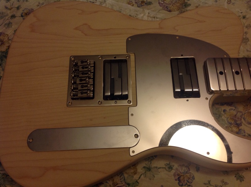 The guitar I'm working on has a 2TEK bridge, and an Alumitone Deathbucker in the bridge position. It's a Telecaster body, and 2TEK actually makes a bridge plate/mounting ring for this exact combination. Perfect, right?