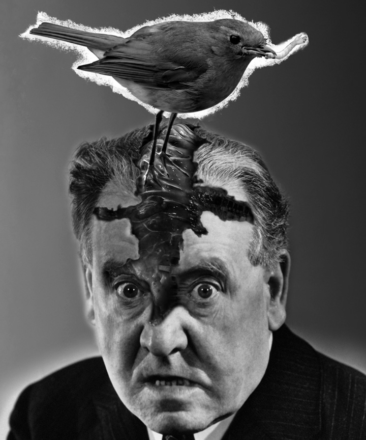 Hot off the presses, a photocollage for a friends effed-up zine. I call this one "Fig. 679 - Birds are secretly evil." There's definitely things I'd like to tweak, but it'll have to do for now, since he's going to press this week. Ah, well.