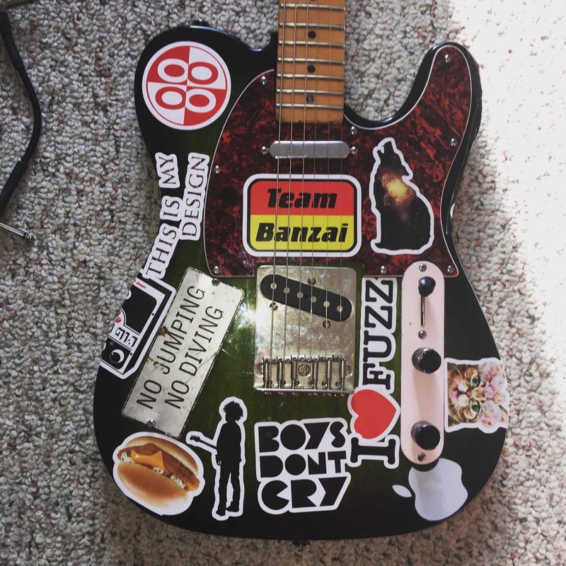 About to fully sticker collage the pickguard on my Fallout...getting covered with other builder stickers me thinks (I have MAE, Dirge, C/E, FuzzHugger, Mountainking, etc)