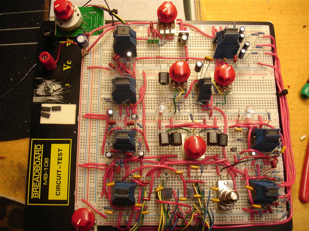 It's still a top priority for this year though and a significant portion of it is all designed and ready... here's a pic of the bread board with decay control, modulation, stereo paths, soft touch relay switching. I consider those things crucial, they're the must haves, and the expression control, effects loop, and buffered bypass options are still things I'm pondering... I still plan on doing two prototypes as well, a full size with everything mentioned and then a smaller size, same as the old size like your Mondrian, that won't have some things like the buffered bypass option or the effects loop. I'm still hung up on the smaller size box, I just don't love the idea of using the 1790NS...