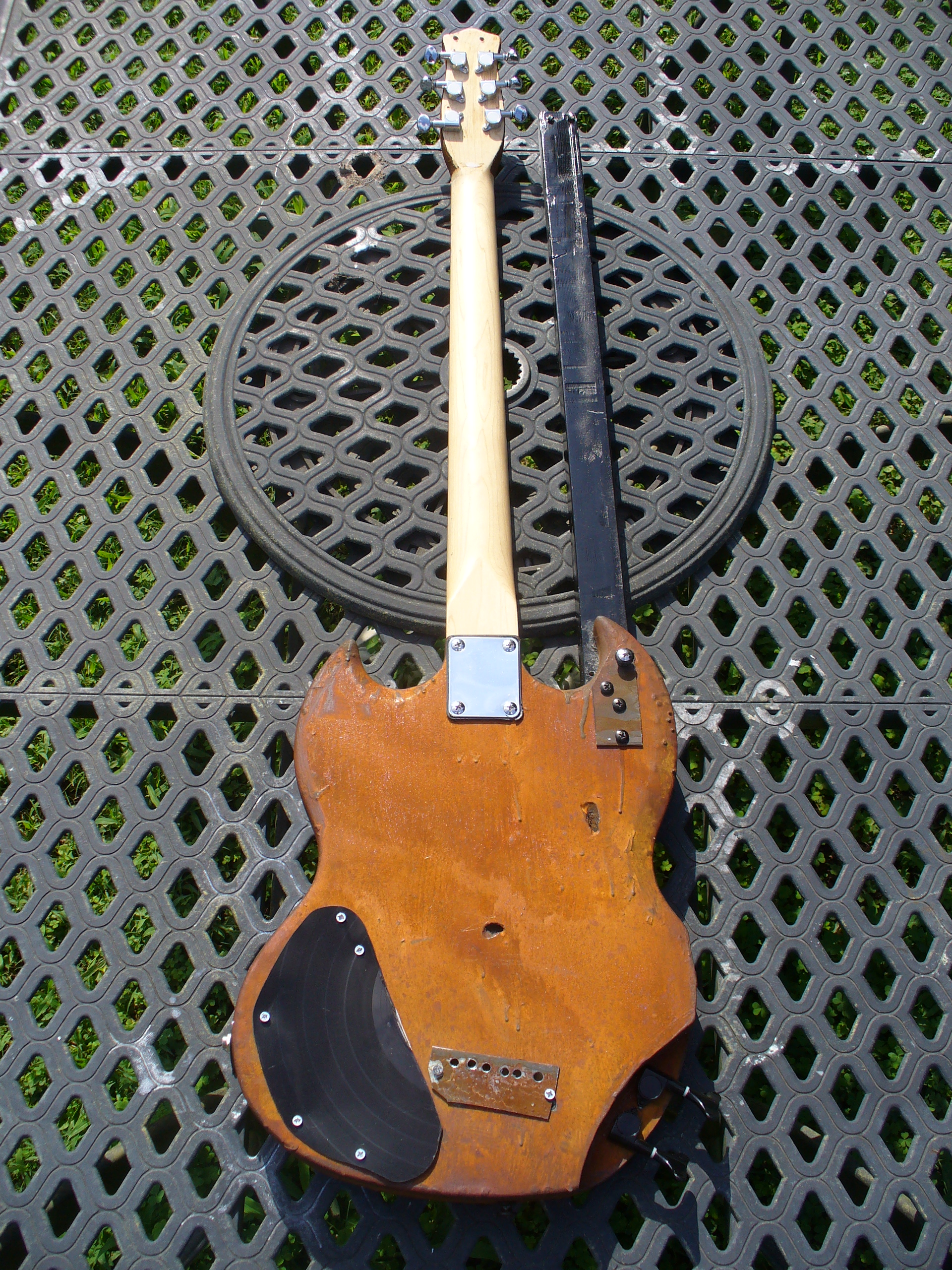 Mudfuzz kindly donated this carcass a while ago, but it's been sitting for months, gathering power. A dano short scale bass neck and GFS pickups, plus salvaged parts turned it into...