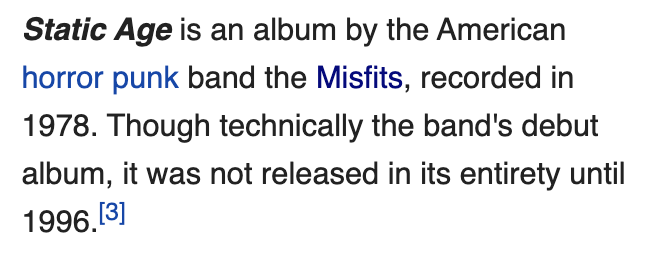 HOLY FUQ I AM STUPID! I thought 'Static Age' came out in 1978. N O P E. Not released until much later... nearly 20 years. This is truly a confession as I thought I was a huge MISFITS fan. W E L P.